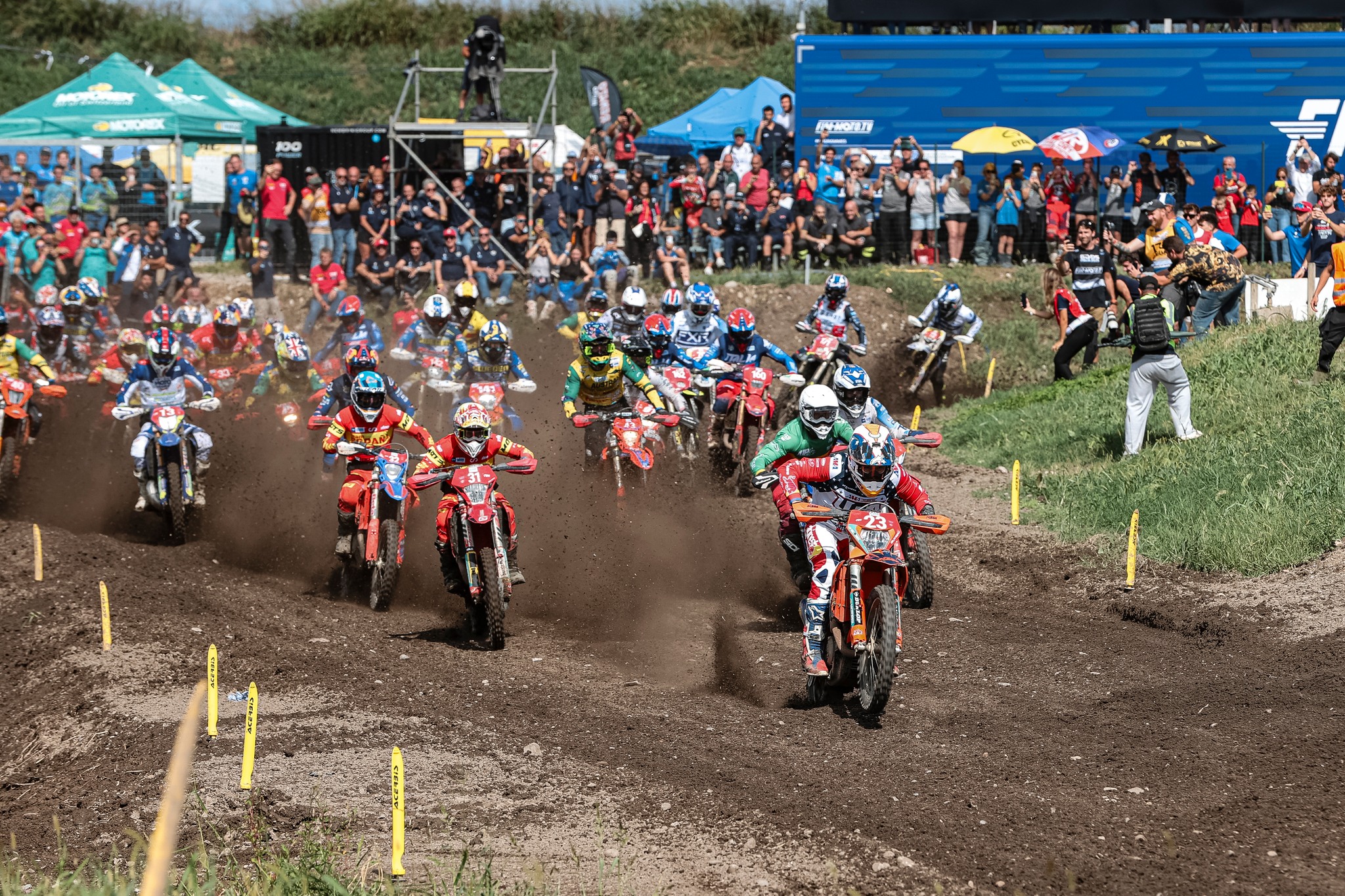 Na pista de Covo MX, utilizada no regional de Motocross italiano e muito bem preparada, com uma enchente de aficionados – tal como, de resto, ao longo de toda a semana, numa região, os Valli Bergamasche, que é o coração do Enduro transalpino – viveu-se mais um dia de festa, com várias mangas de motocross na ementa, começando-se pelos clubes e culminando nas seleções nacionais.