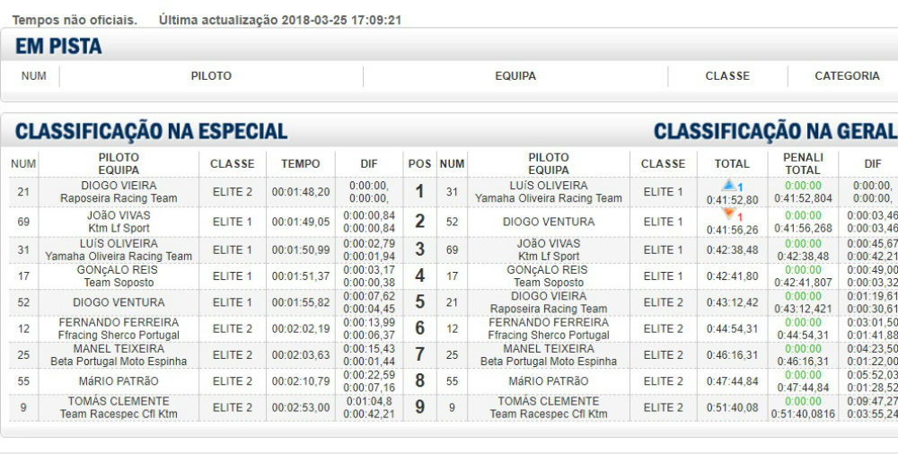 Nota ainda para Diogo Vieira (Yamaha) que depois dos problemas que registou no primeiro dia, acabou por realizar este domingo uma prova de bom nível acabando na quinta posição a 1m19,61s de Luís Oliveira.