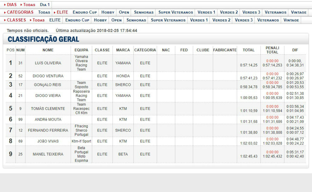 O top cinco desta segunda prova do Nacional de Enduro foi ocupado por Tomas Clemente (KTM) que conclui a prova a 3m56,34 de Luís Oliveira.