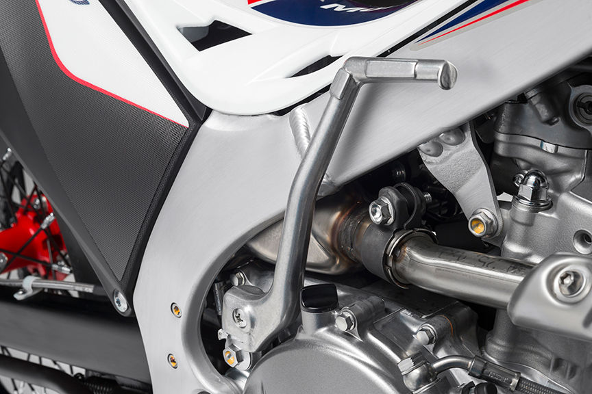 Suspensão traseira = Sistema Pro-Link, com amortecedor R16V e afinação da pré-carga e da extensão