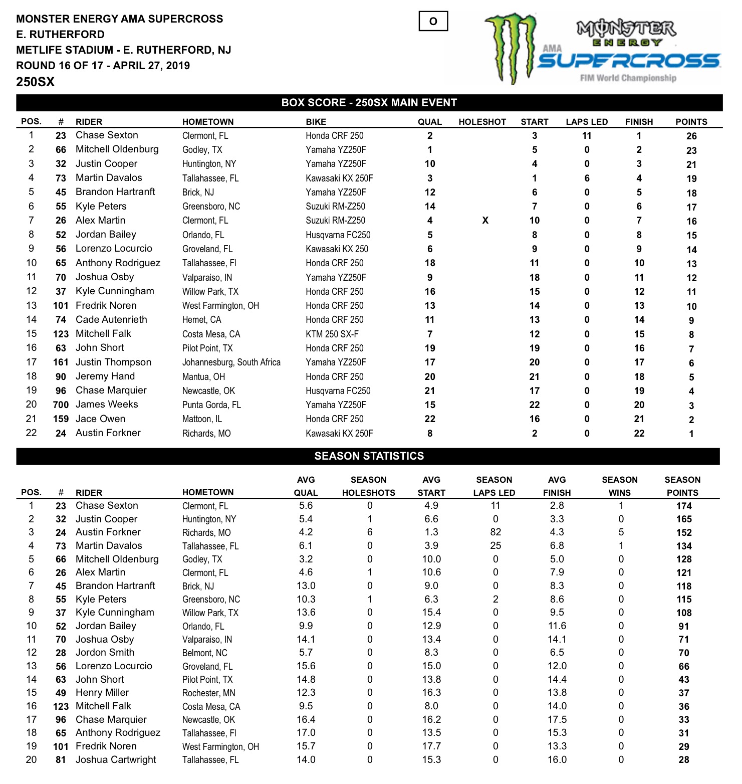 Las Vegas encerra a temporada no próximo fim de semana. Chase Sexton parte com 9 pontos de vantagem sobre Justin Cooper mas tudo pode acontecer na “cidade do pecado”!