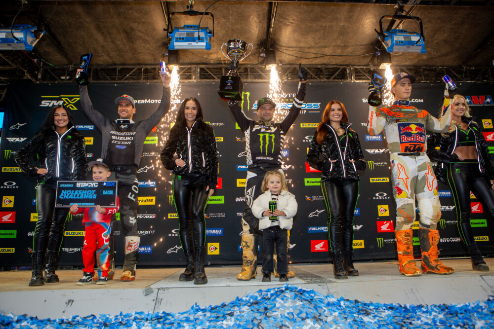 Com um sexto lugar e dois primeiros, Cooper Webb garantiu a sua segunda vitória da temporada, à frente de Ken Roczen (Progressive Insurance ECSTAR Suzuki, 1-5-2) e do terceiro classificado Chase Sexton (3-2-5), que lambeu as suas feridas. “Errei duas vezes e foi constrangedor ”, admitiu o nativo de Illinois com franqueza, caindo no chão em desespero após o seu terceiro erro consecutivo em três rounds, mal contendo as lágrimas. Com Daytona à vista, Webb lidera com 5 pontos de vantagem sobre Sexton no campeonato, onde um esplêndido segundo lugar de Roczen (19 pontos atrás) não pode ser descartado, tendo vencido com autoridade a primeira corrida de Arlington após uma batalha acirrada com Justin Cooper (Yamaha Star Racing), um dos pontos altos da noite.