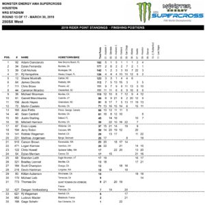 Em Houston voltou a ser aplicado o formato Triple Crown. As três Finais foram vencidas por três pilotos diferentes mas, no cômputo geral, o francês foi quem somou mais pontos na classe 250 Costa Oeste.