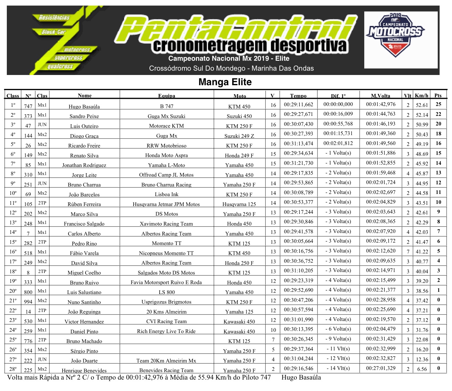Foi um regresso em grande para Hugo Basaúla ao campeonato nacional de Motocross. O piloto da KTM liderou toda a corrida da categoria Elite e venceu com 16 segundos de avanço sobre o líder do campeonato, Sandro Peixe.
