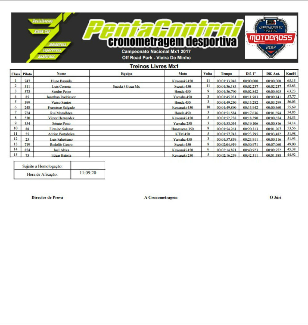 15h00: 1ª Manga MX1 (30 minutos + 2 voltas)