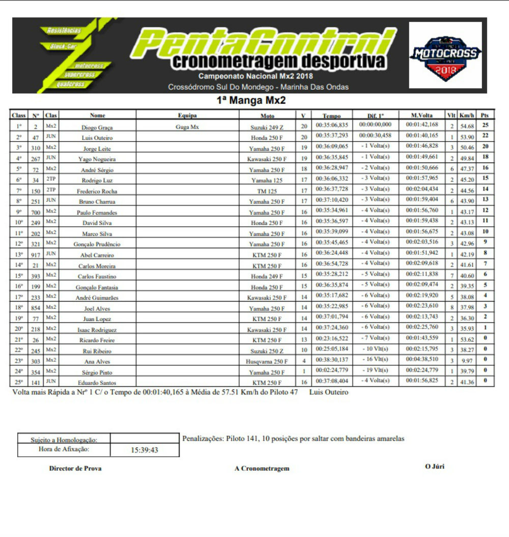 O terceiro lugar foi ocupado por Jorge Leite (Yamaha) que terminou esta primeira corrida a 1 volta do vencedor.