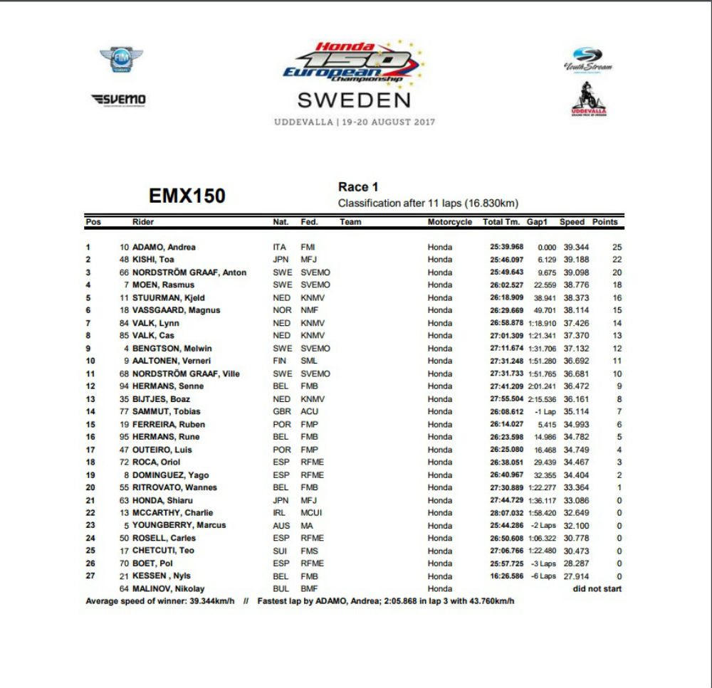 Luís Outeiro não feliz feliz na primeira manga do GP da Suécia do Campeonato Europeu Honda 150. O piloto português que está na luta pelo pódio no campeonato terminou a primeira corrida em 17º.