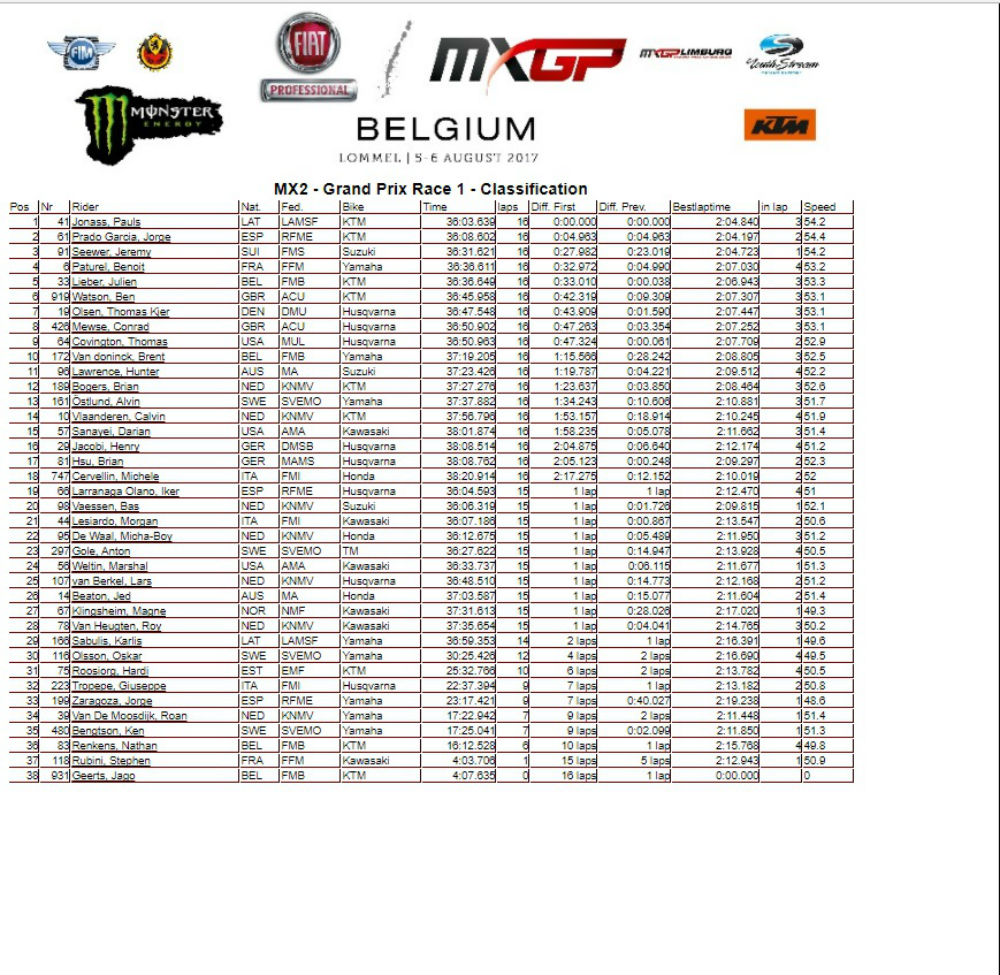 O último lugar do pódio foi ocupado por Jeremy Seewer (suzuki) que terminou a 27,982s, longe da luta pela vitória que foi travada entre os homens da KTM.