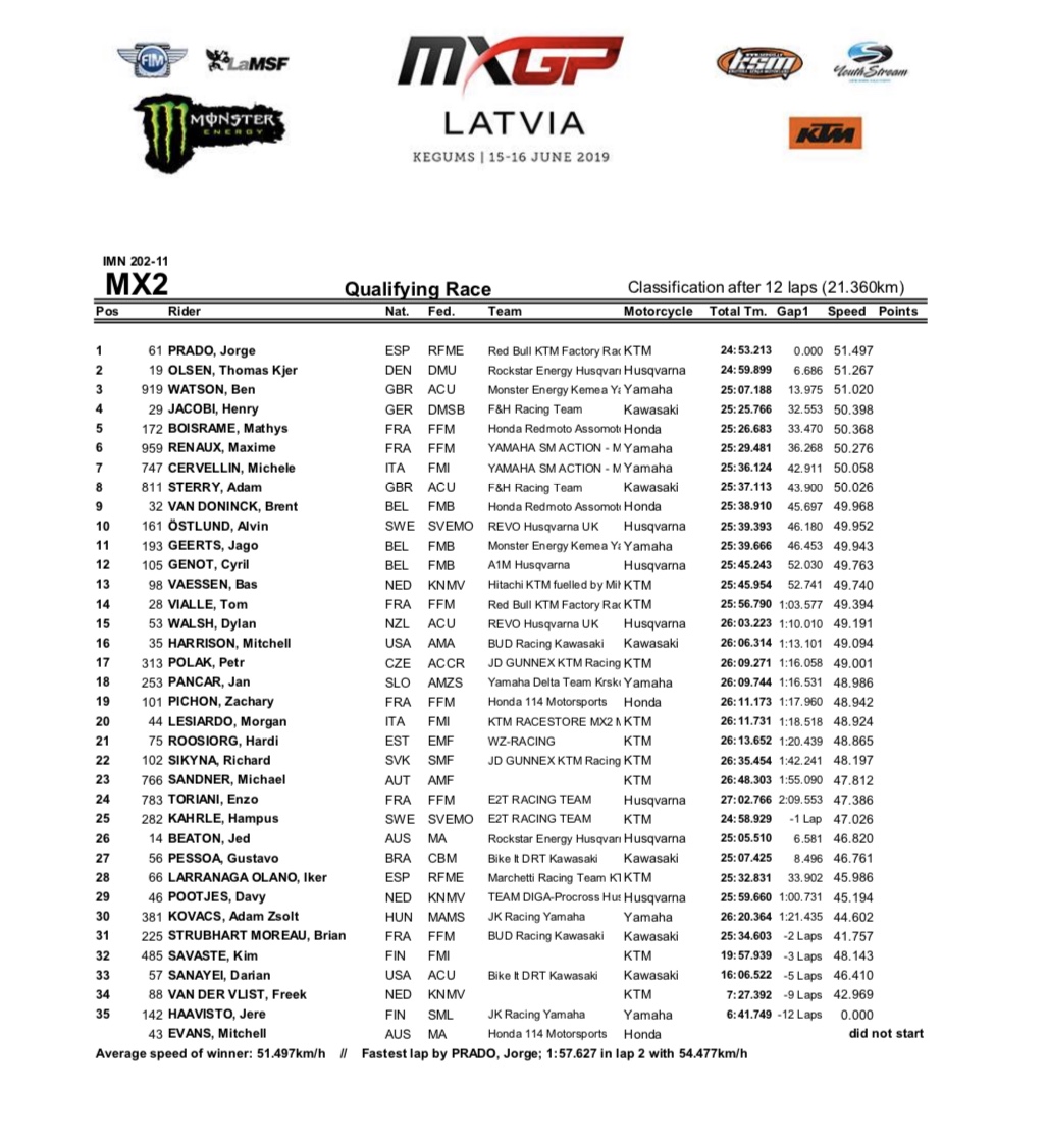 Só deu Jorge Prado na corrida de qualificação de MX2 em Kegums.