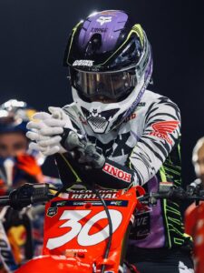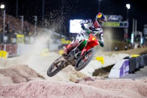 Jett Lawrence, da equipa Honda HRC Progressive, conquistou o seu terceiro título consecutivo no SMX World Championship™ com uma vitória dramática na pista SMX construída sobre a Strip, no Las Vegas Motor Speedway. Depois de vencer a primeira manga, Jett fez uma recuperação emocionante no final da segunda manga e alcançou o segundo lugar. As suas pontuações (1-2) nas mangas combinadas garantiram-lhe a vitória na corrida da noite, o bónus de 100 000 dólares pela vitória e, mais importante ainda, o prémio de 1 milhão de dólares pelo campeonato.