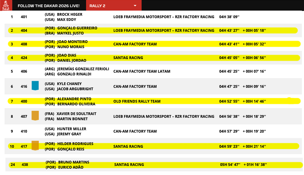 Dakar, Etapa 3 – Portugueses monopolizam etapa nos SSV