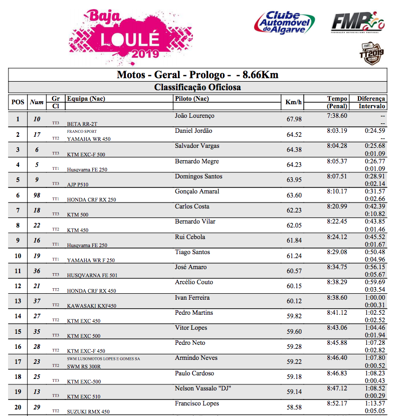 Na 2ª posição o líder do campeonato Daniel Jordão em Yamaha e no 3ª lugar ficou Salvador Vargas em KTM seu grande opositor nas primeiras 2 provas do campeonato.