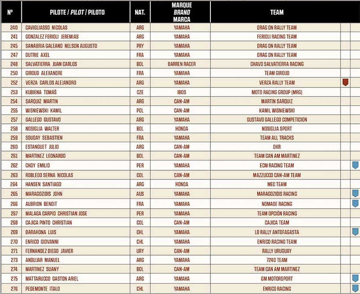 Dakar: Lista de Inscritos Quads